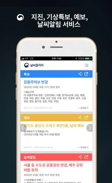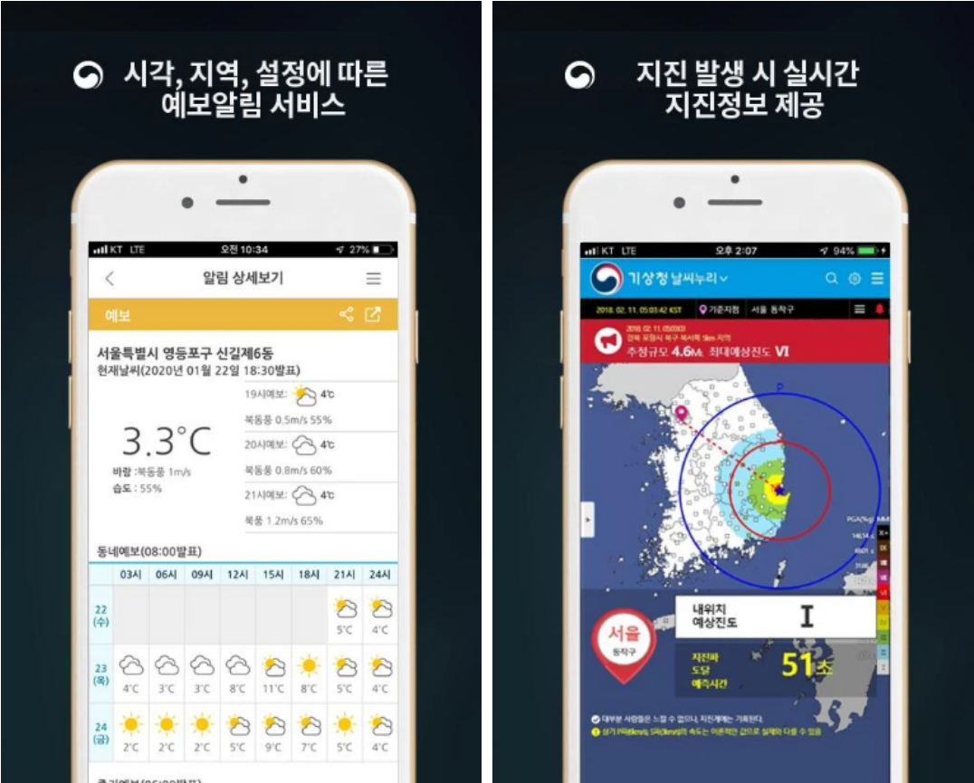 지진, 기상특보, 예보, 날씨 알림 서비스를 제공하고 있어 유용하게 활용이 가능합니다.