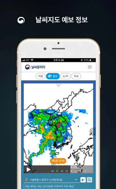날씨 지도 예보 정보가 있어 넓은 지역의 상황을 한눈에 볼 수 있습니다.